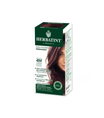 Herbatint 4M Chatain Acajou 150ml, coloration naturelle sans ammoniaque pour cheveux colorés, offrant une teinte chatain acajou riche, lumineuse et durable.