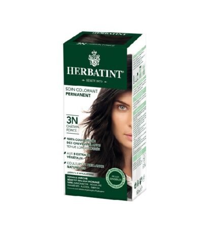 Le soin colorant permanent Herbatint 3N Chatain Fonce allie coloration végétale intense et soin profond pour cheveux colorés, sans ammoniaque ni parabènes.