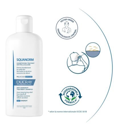 Ducray – Squanorm Shampooing traitant antipelliculaire – Pellicules grasses – 200 ml