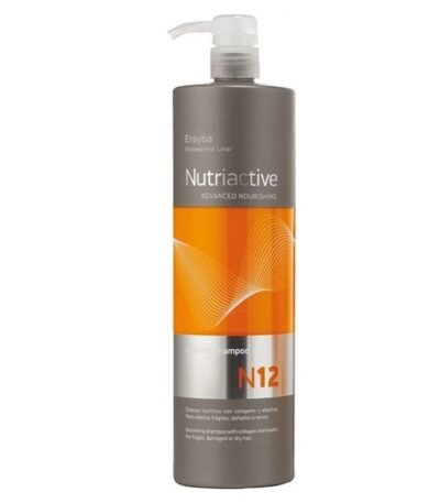 Erayba Nutriactive N12 Collastin Shampooing 1000ml hydrate et répare intensément les cheveux secs, pour des cheveux doux, brillants et revitalisés.