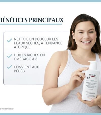 EUCERIN ATOPICONTROL HUILE DE BAIN offre une hygiène douce et un soin optimal pour peaux sensibles et atopiques, idéale contre l’eczéma au quotidien.