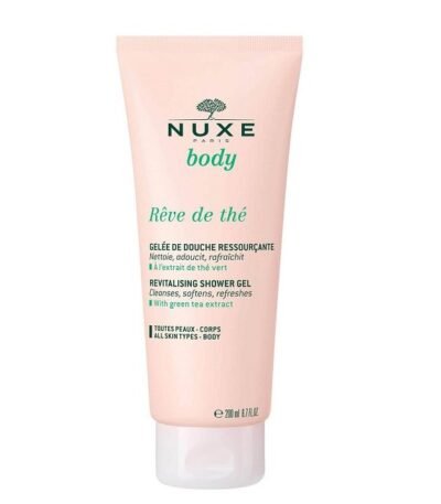 NUXE Rêve de Thé Gelée de Douche Ressourçante 200 ml, gel douche frais et doux, idéal pour l'hygiène corporelle, soin peau sensible et parfum vivifiant.