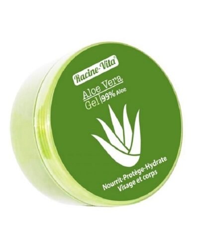 Le RACINE VITA GEL ALOE VERA PURE 99% 80G hydrate intensément les peaux sèches, offrant un soin naturel et apaisant pour l'hygiène corporelle au quotidien.