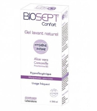 Biosept 5.5 est un gel nettoyant confort extra-doux à l’aloe vera et la fraîcheur lavande pour peaux et muqueuses sensibles,