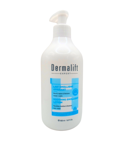 Le Dermalift Lait Corporel Emollient Apaisant 500ml hydrate intensément et apaise les peaux sèches. Soins efficaces du corps avec DERMLIFT pour une peau nourrie et confortable.