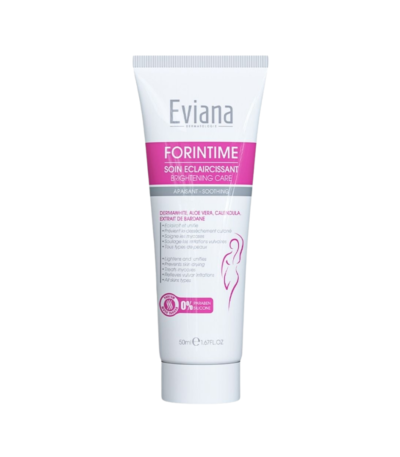 Eviana Forintime Duo Pack associe un gel intime doux de 200ml à une crème éclaircissante de 50ml pour une hygiène intime quotidienne et un soin unifiant délicat.