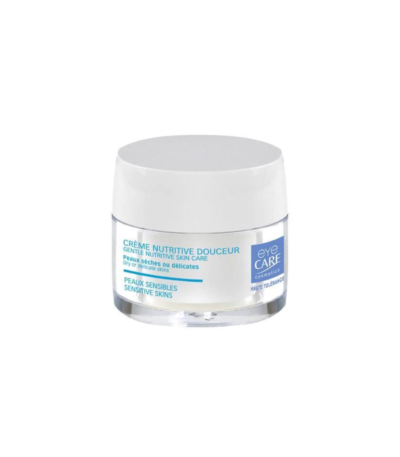 Crème nutritive pour soin du visage, conçu pour les peaux sèches et sensibles, à triple action nourrissante, anti-radicalaire et adoucissante, permettant de protéger du vieillissement prématuré et des agressions extérieures ( vent, froid ), d'apaiser la sensibilité cutanée, de diminuer les sensations de tiraillements de la peau, tout en hydratant les couches supérieures de l'épiderme.