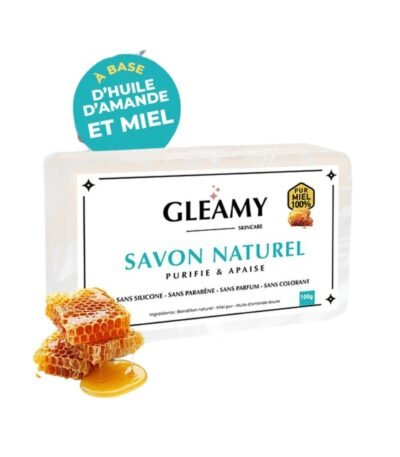 Savon Gleamy, qui purifie votre peau et la nettoie en profondeur sans l’agresser. Formulé pour tous les types de peau.