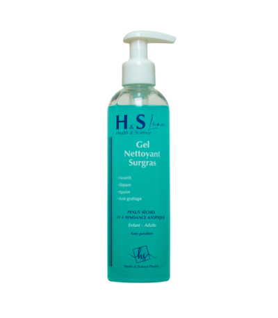 H&S Line Gel Nettoyant Surgras 250ml, soin doux et efficace pour peaux sensibles et atopiques. Nettoie, démaquille, hydrate et apaise tout en respectant votre peau.