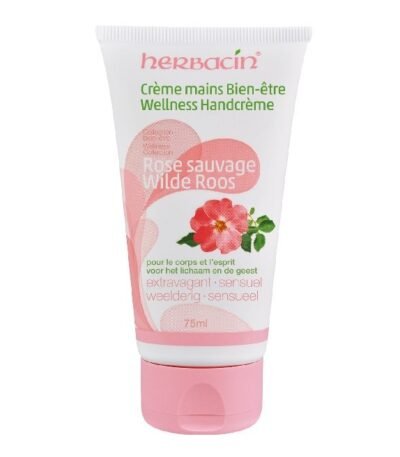 Herbacin hand cream wild rose tube 75ml, soin expert pour mains et pieds, hydrate, répare et parfume délicatement. Idéal pour soin mains et soins du corps.