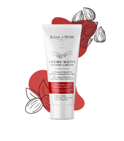 Crème Mains Beurre de Karité & Huile d’Amande Douce | Julia & Rose Soin réparateur pour peaux sèches à très sèches. Nourrit et restructure, offrant douceur, souplesse et confort.