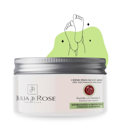 Crème pieds secs & Abimés  Enrichie à la Vitamine E | Hydratante & Protectrice | Julia & Rose La crème pour les pieds JULIA & ROSE enrichie à la vitamine E régénère et restaure efficacement la peau de vos pieds fragiles, secs et abimés.