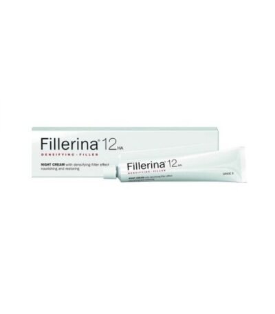 Fillerina 12HA Night cream grade 3 50ml, soin de nuit anti-âge enrichi en Acide Hyaluronique pour réduire rides et repulper la peau. Efficace et hydratant pour peaux matures.