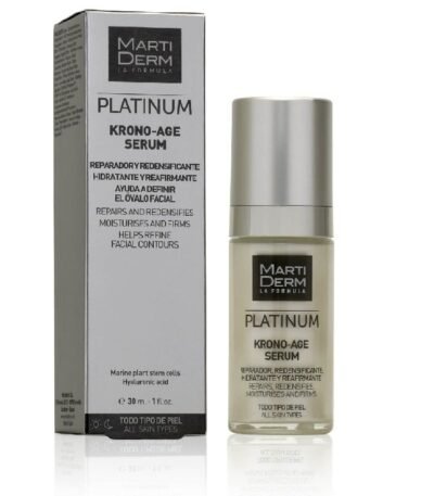 Le sérum Martiderm Platinum Krono-Age 30ml hydrate intensément et réduit rides et signes de l’âge pour une peau visiblement plus ferme et éclatante.
