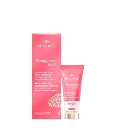Boostez l'éclat de votre peau avec la routine Prodigieuse Boost! 1.Jour : Le Gel-crème éclat multi-correction 40ml :Les 1ers signes de l’âge sont estompés, la luminosité du teint est boostée. Texture légère avec un fini mat idéal pour les peaux normales à mixtes. 2. Nuit : Le Baume-huile récupérateur nuit 15ml offert : Sa texture baume-huile ultra-cocooning enveloppe la peau d‘un cocon de douceur sans fini gras.