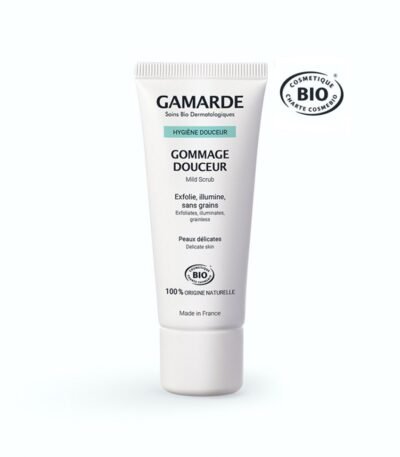 Exfolie – Illumine Gommage sans grains àbase de cellulose • Cellulose d’origine naturelle • Huiles essentielles de Lavandin et de Citron bio • Huile d’Argan bio • Eau Thermale de Gamarde