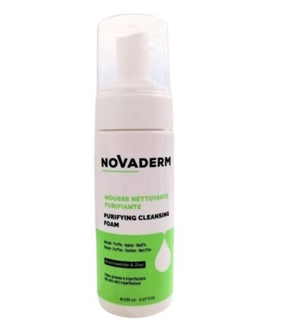 Novaderm Mousse Nettoyante Purifiante - 150ml est un nettoyant doux et efficace, formulé pour les peaux mixtes à grasses, qui élimine les impuretés et l'excès de sébum tout en purifiant la peau sans l'assécher.