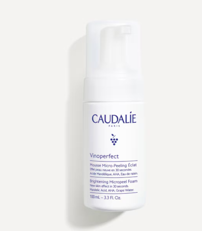 CAUDALIE Vinoperfect Mousse Micro-Peeling Éclat 100ML offre un nettoyage doux et un peeling micro-peeling pour un teint éclatant et un grain de peau affiné, idéal pour tous types de peau.