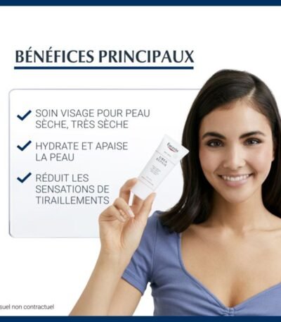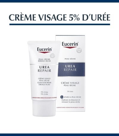 EUCERIN UreaRepair CRÈME VISAGE 5% D'URÉE hydrate intensément et nourrit les peaux sèches, offrant confort et protection pour un soin visage quotidien efficace.