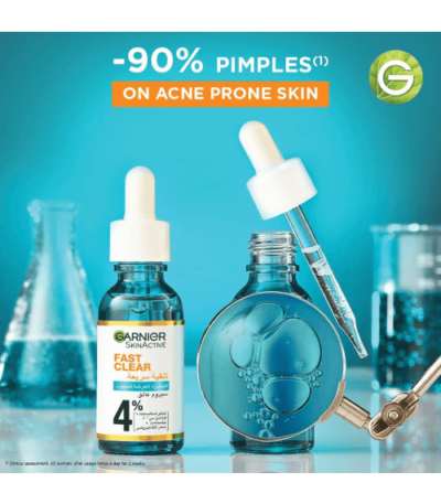 Découvrez notre nouveau Sérum Booster Garnier Fast Clear, avec notre concentration la plus élevée jamais vue de 4%* (Acide Salicylique + Vitamine C^+ Niancinamide + AHA).