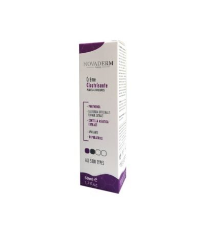 Novaderm Creme Cicatrisante 50ml, soin expert NOVADERM, accélère la cicatrisation, réduit cicatrices et brûlures, pour une peau abîmée réparée rapidement et naturellement.