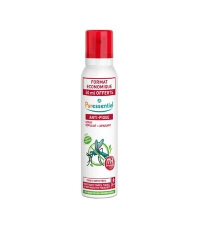 Le Puressentiel Zoom Anti-pique spray répulsif et apaisant anti-moustiques protège et apaise la peau abîmée, idéal contre les piqûres grâce à sa formule naturelle et son spray pratique.