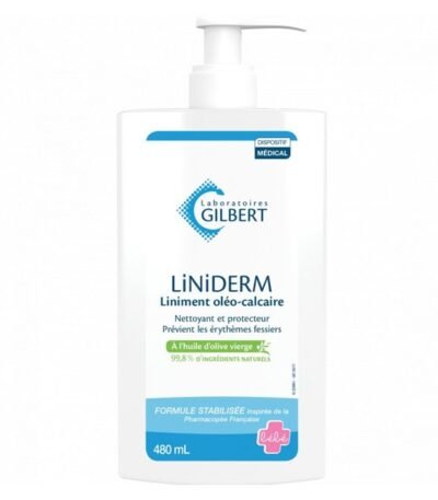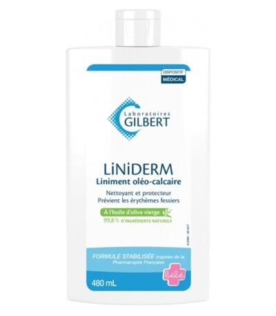 Soin protecteur et apaisant pour peaux fragiles, le Gilbert Liniderm Liniment Oléo-Calcaire 480 ml soulage rougeurs et érythème fessier, idéal pour bébé et peau abîmée.