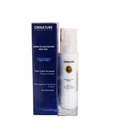 Ornature crème Eclaircissante Anti-âge 50ml hydrate intensément, réduit taches et rides, pour une peau lumineuse et unifiée. Idéale peaux sensibles et à imperfections.