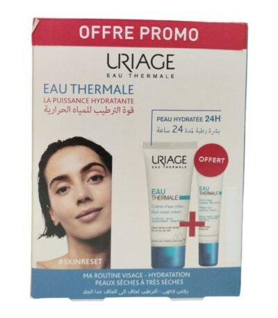 Uriage Eau Thermale Crème Riche 40ml Hydratante, cette crème à la texture riche et onctueuse nourrit les peaux les plus assoiffées en profondeur. La Crème d’Eau Riche apporte un confort instantané pour une peau éclatante tout au long de la journée. URIAGE Contour des Yeux 15ml L'effet défroissant de ce Soin d’Eau diminue l’apparence des ridules de déshydratation. L’apparence des cernes est réduite tout en conférant une sensation de fraîcheur. Ce soin hydrate l'épiderme délicat du contour des yeux.