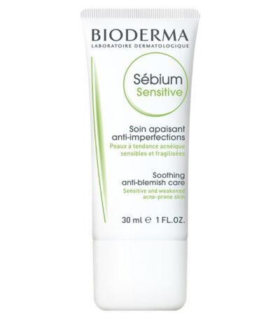 Bioderma - Sébium Sensitive, soin visage anti acné et imperfections, spécialement formulé pour peaux grasses sensibles. Apaise, régule le sébum et atténue les taches.