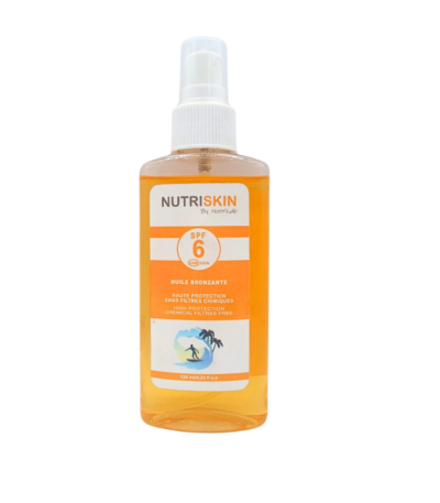 L'huile bronzante Nutriskin SPF 6 hydrate, protège légèrement et sublime le bronzage pour visage et corps. Parfaite pour un soin solaire naturel et confortable.