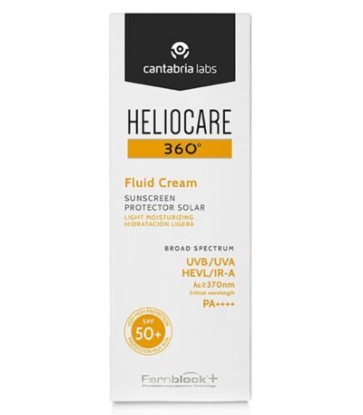 Heliocare 360º Fluid Cream SPF 50+ de CANTABRIA LABS offre une protection visage invisible, adaptée à tous types de peau, pour un soin solaire efficace et confortable.