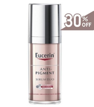Eucerin ANTI-PIGMENT Soin de Jour SPF 30 dispose d'éléments agissant comme filtre UVB (SPF 30) et UVA pour protéger la peau des différents types de taches brunes (taches brunes, taches de vieillesse, melasma ou masque de grossesse). Ce soin permet de retrouver une peau plus uniforme et plus éclatante grâce à son action anti-taches brunes.