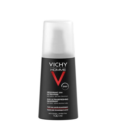 VICHY HOMME Déodorant Vaporisateur Ultra-Frais garde les aisselles fraîches et sans odeur pendant 24h.
