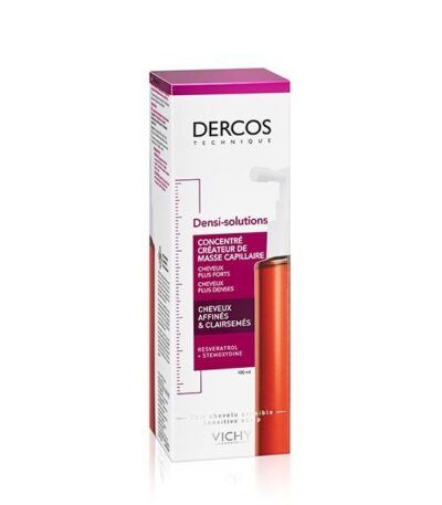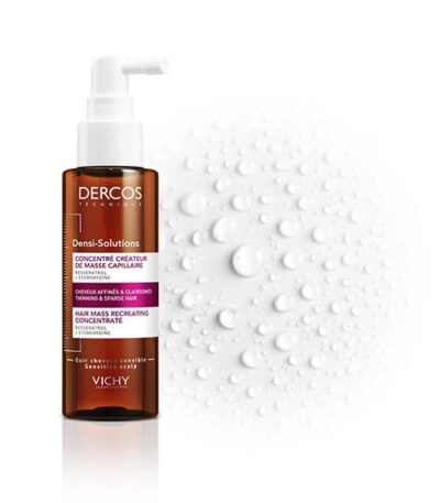 DERCOS TECHNIQUE Densi-Solutions Concentré Anti-Chute redonne de la force et de l'épaisseur aux cheveux affinés. • Besoin : Chute de cheveux | Femmes. • Ingrédients Clés : Stemoxydine pour redensifier | Filloxane pour apporter du volume | Resvératrol pour prévenir le vieillissement des cellules. • Sécurité : Sans Parabène | Sans Silicone | Convient aux cuirs chevelus sensibles. • Utilisation : Appliquer 1 fois par jour sur cheveux secs ou essorés pendant 6 semaines.