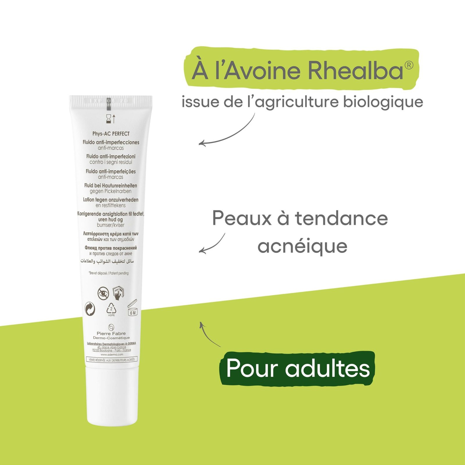 A-DERMA — PHYS-AC PERFECT FLUIDE VISAGE ANTI-IMPERFECTIONS ANTI-MARQUES — Phys-AC Perfect 40 ml