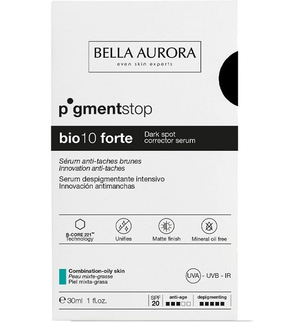 BELLA AURORA – BIO10 FORTE Pigment Stop Peau mixte à grasse est spécifiquement formulé pour les peaux mixtes à grasses, mais peut également convenir aux peaux normales sous surveillance dermatologique.