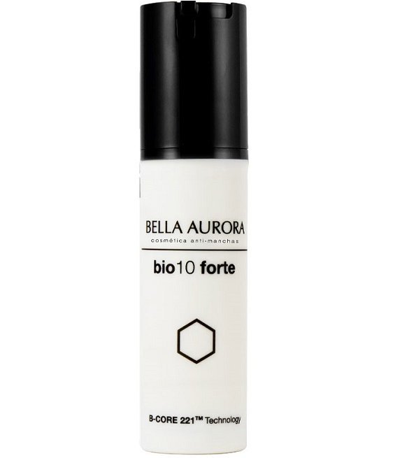 Soin visage puissant Bella Aurora BIO10 FORTE, réduit taches et imperfections pour peau mixte à grasse, unifie et matifie le teint. Efficace, léger et recommandé.
