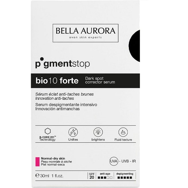 Découvrez BELLA AURORA – BIO10 FORTE Pigment Stop Peau Normale à Sèche, un soin expert signé Bella Aurora, spécialement conçu pour lutter efficacement contre les Imperfections, Acné & Taches tout en respectant votre Soins du Visage. Ce traitement innovant cible les Taches pigmentaires pour un teint plus uniforme et éclatant.