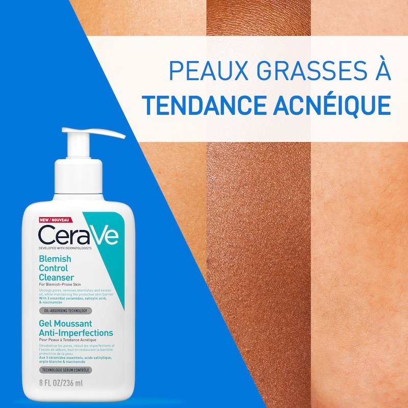 Découvrez le BEST SELLER incontournable pour peaux grasses à tendance acnéique : le CeraVe Gel Moussant Anti-Imperfections | Peau Grasse à Tendance Acnéique = Miniature Offerte. Un Nettoyant Visage unique, spécialement formulé pour purifier en douceur. Profitez des PROMOTIONS BEAUTY exclusives sur ce produit CeraVe plébiscité, parfait pour vos Soins du Visage et Soins Peau Grasse & Anti acnéique. Une routine Soins Visage efficace avec CeraVe pour une peau nette et apaisée.