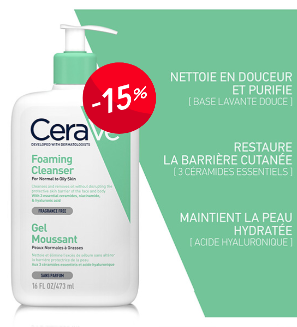 CeraVe Gel Moussant Nettoyant Peau Normale à Grasse | 473ml -15%