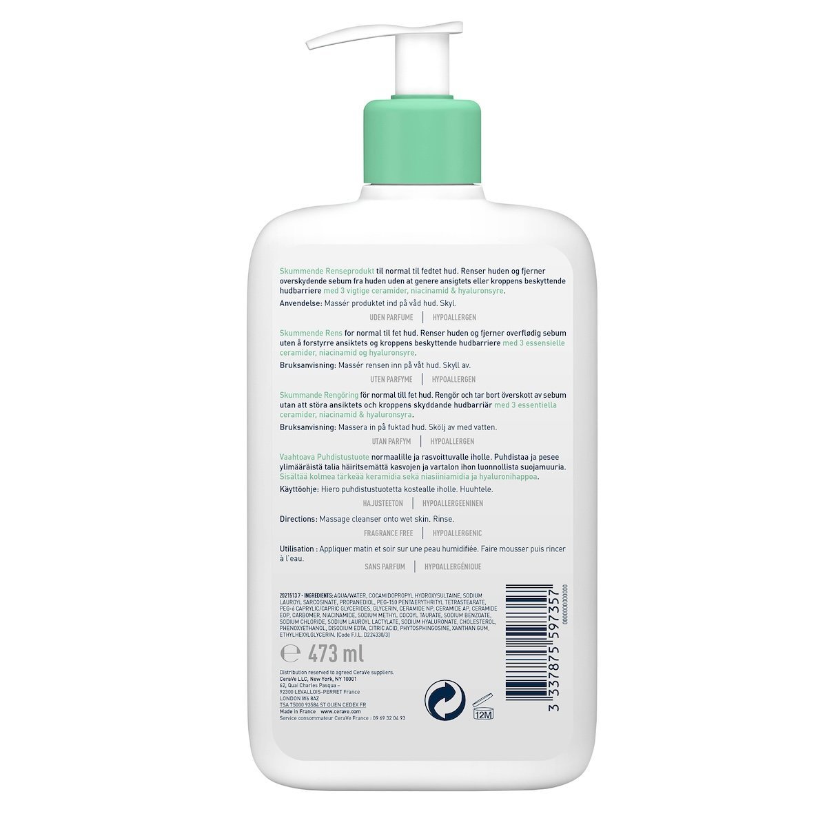 CeraVe Gel Moussant Nettoyant Peau Normale à Grasse | 473ml