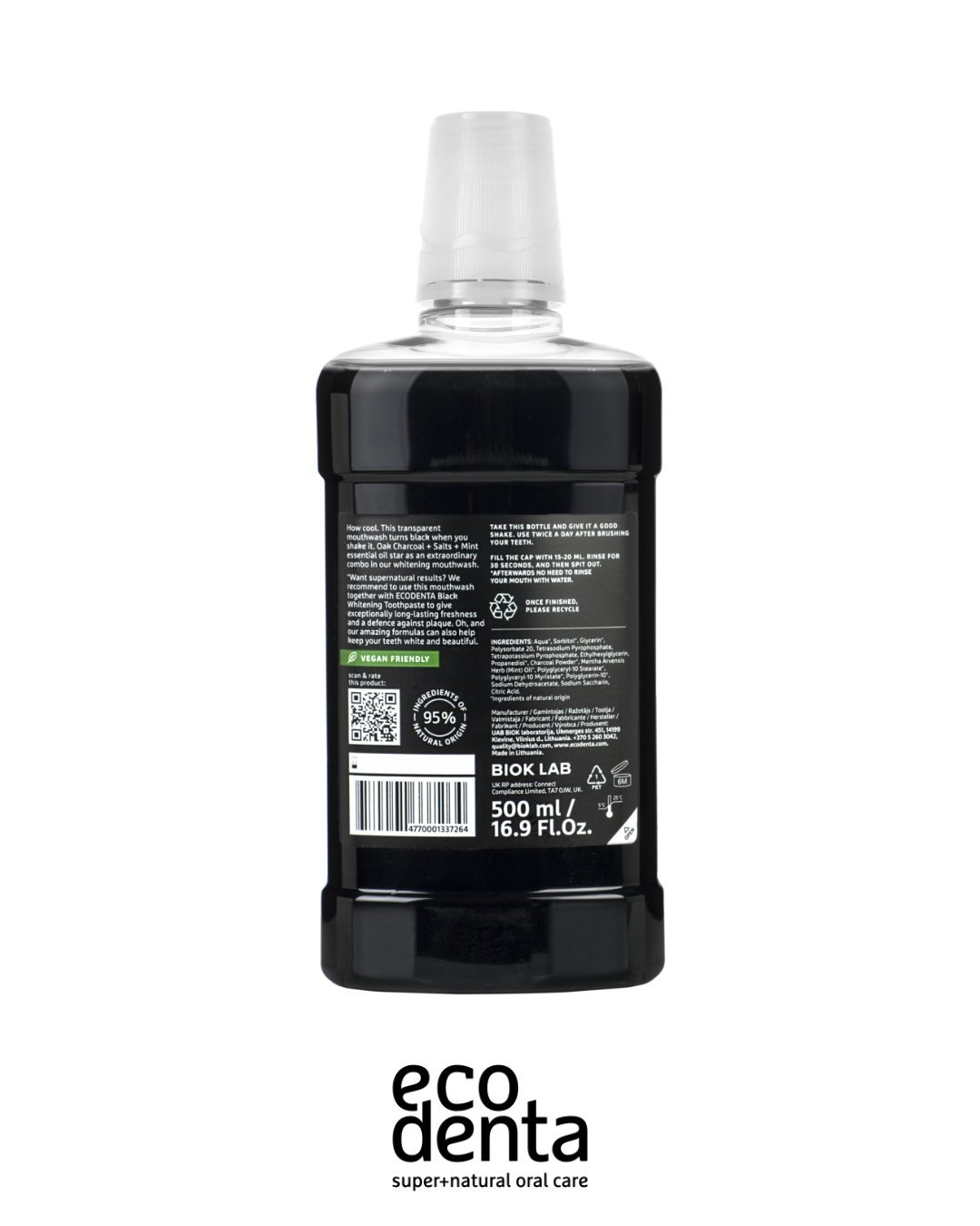ECODENTA Bain de Bouche Blanchissant au Charbon Actif 500ml