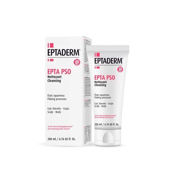Le Epta Pso Nettoyant 200ml par EPTADERM nettoie, démaquille et prend soin de votre visage et corps avec douceur, idéal pour peaux sensibles.