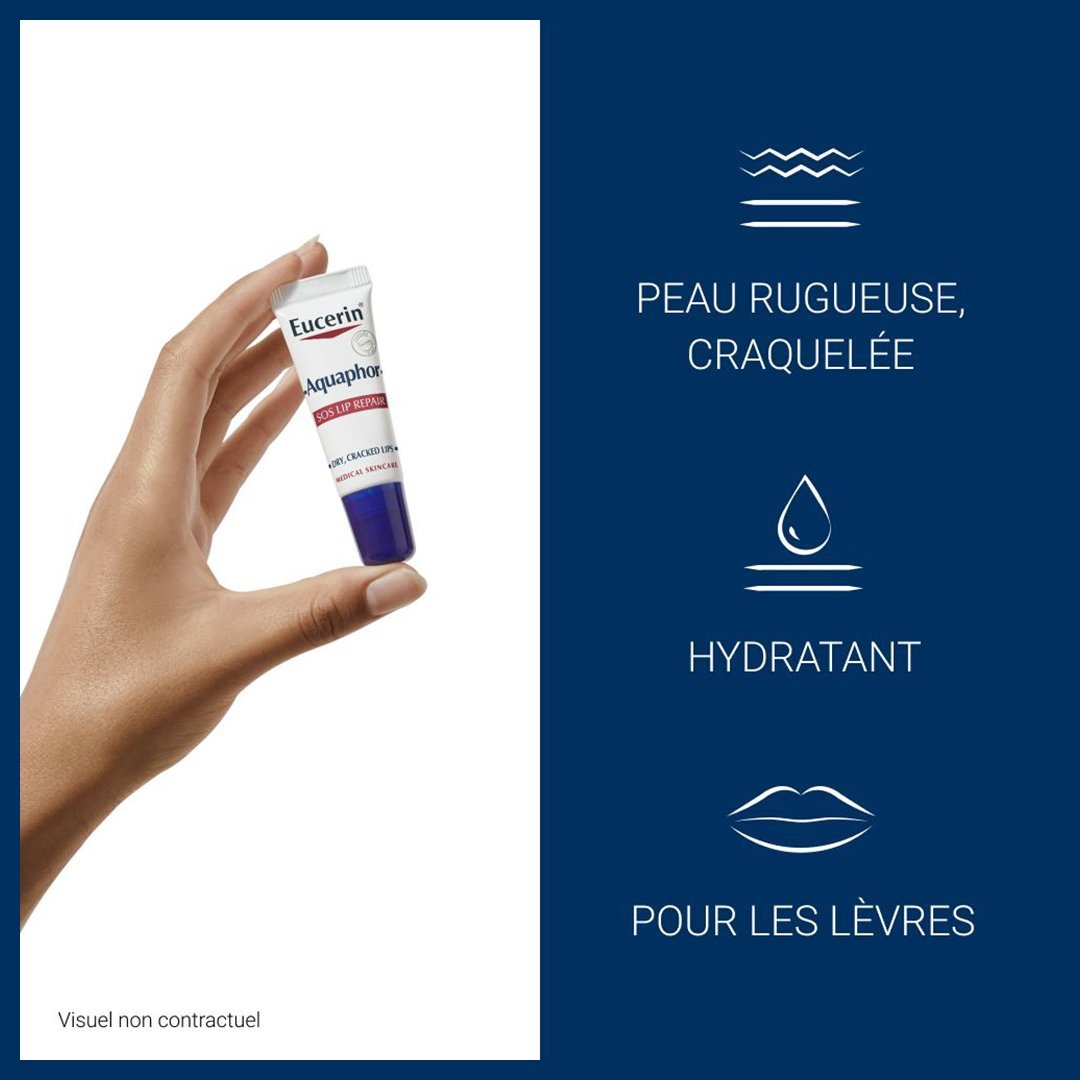 - Réparation intensive des lèvres abîmées avec EUCERIN AQUAPHOR REPARATEUR LÈVRES SOS 10 ML