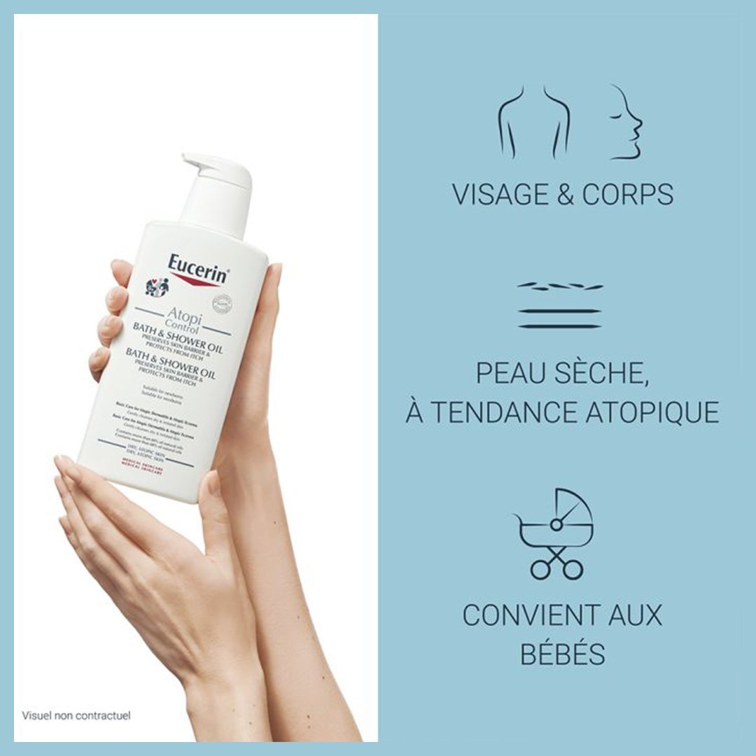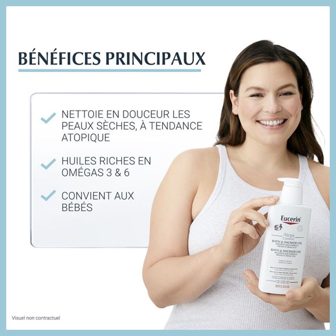 EUCERIN ATOPICONTROL HUILE DE BAIN offre une hygiène douce et un soin optimal pour peaux sensibles et atopiques, idéale contre l’eczéma au quotidien.