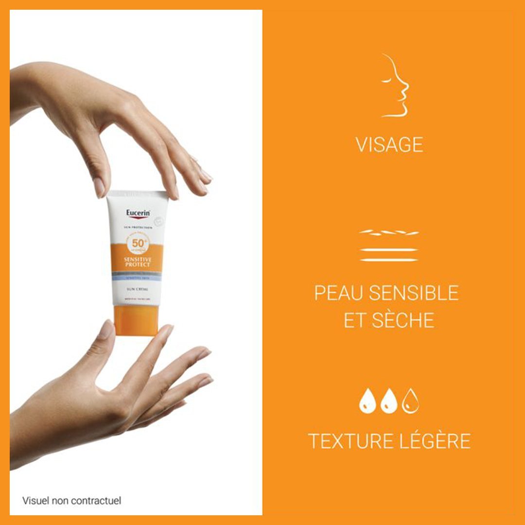 - Protection SPF 50+ avec Eucerin SUN CRÈME VISAGE 50+ pour une défense maximale contre les rayons solaires visage