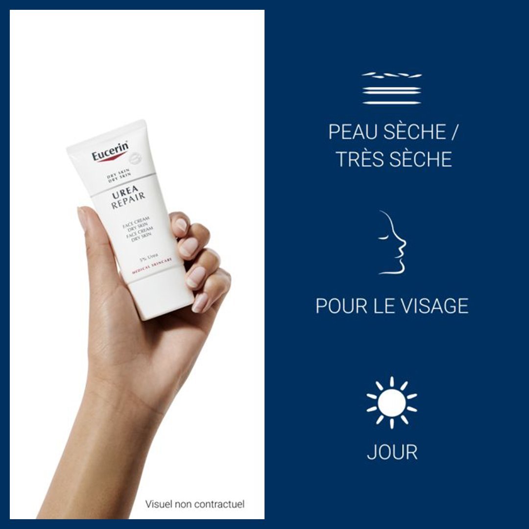 - EUCERIN UreaRepair CRÈME VISAGE 5% D'URÉE protège la barrière cutanée et améliore la texture de la peau