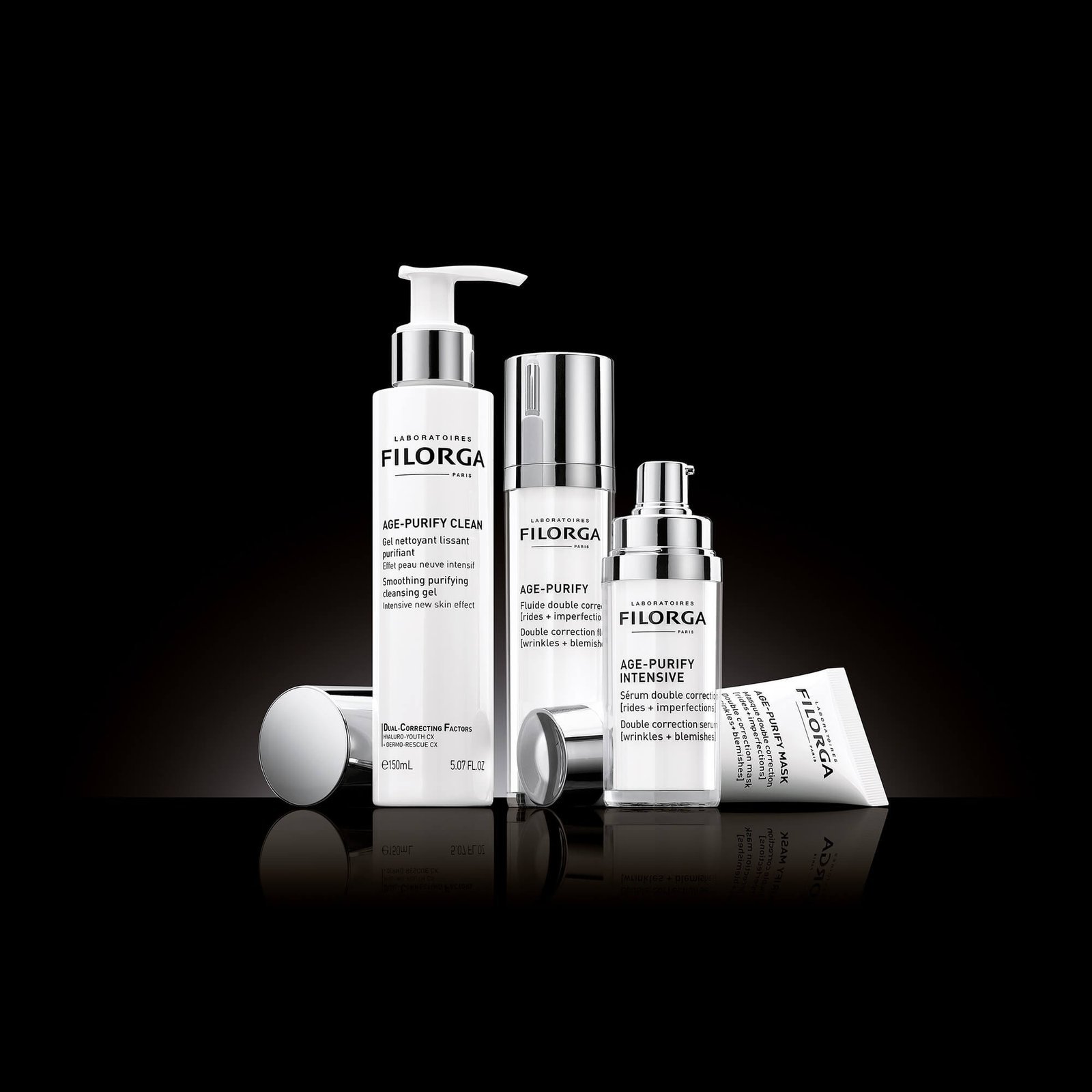 • AGE-PURIFY CLEAN est un gel nettoyant FILORGA pour le visage, qui cible simultanément les rides et les imperfections (pores, brillances, boutons, points noirs et rougeurs).