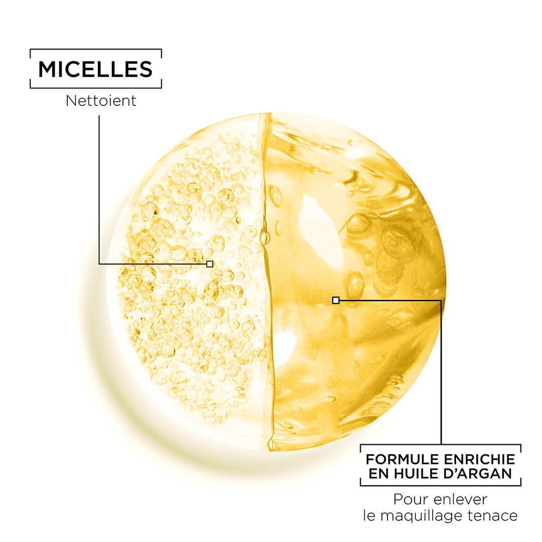Garnier crée une nouvelle génération de formule biphase enrichie en micelles, actifs nettoyants qui capturent les impuretés comme des aimants, et en huiles démaquillantes et huile d’argan ultra efficaces.